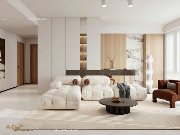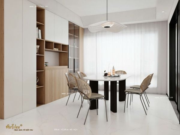 Mẫu gạch với bề mặt mờ mịn dịu mát, dòng xương super white gần như đồng nhất với màu trắng trên bề mặt, khi chạy chỉ hoặc vát cạnh sẽ tạo nên sự đồng nhất đẹp mắt.