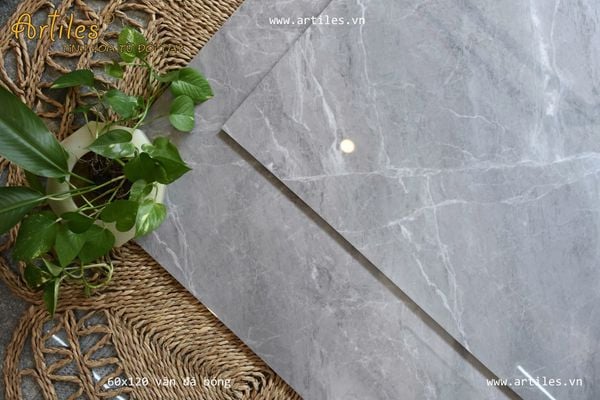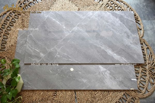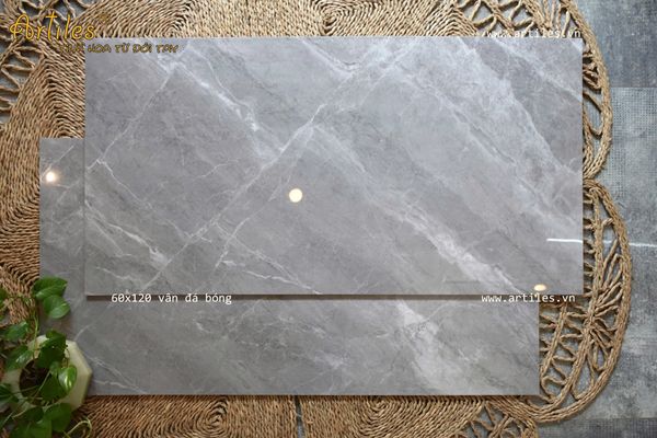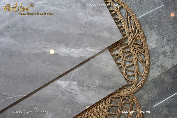 Mẫu sản phẩm 60x120cm bóng vân đá với những đường vân đẹp tinh tinh, rất thật và độ sáng bóng cao.