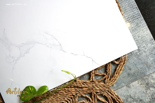 Mẫu gạch với bề mặt mờ mịn dịu mát, dòng xương super white gần như đồng nhất với màu trắng trên bề mặt, khi chạy chỉ hoặc vát cạnh sẽ tạo nên sự đồng nhất đẹp mắt.