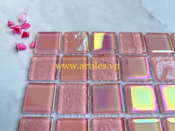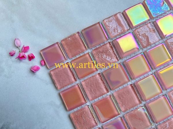 Gạch mosaic thủy tinh lấp lánh màu hồng ArtM7024 sử dụng: trang trí nội ngoại thất ,ốp trang trí phòng khách, phòng ngủ, nhà bếp, phòng tắm, ốp trang trí quán bar, spa, ốp hồ bơi khách sạn cao cấp, resort nghĩ dưỡng...