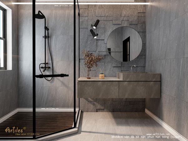 Mẫu gạch vân đá nhám hạt đường có thể sử dụng ốp tường hoặc lát nền.