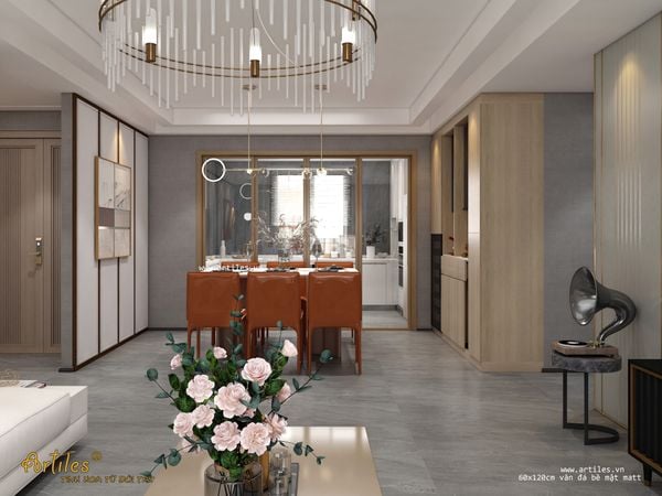 Gạch ốp lát 60x120cm mờ vân đá màu kem beige hướng đến việc dùng gạch thay vào vị trí của đá tự nhiên quý hiếm, nên các mẫu gạch hiện đại đều là vân random (nhiều face) - giống như vân những phiến đá ngoài tự nhiên.