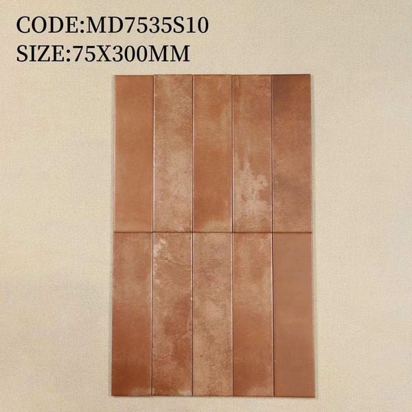 Gạch thẻ giả cổ 75x300mm là loại gạch ốp tường trang trí có kích thước nhỏ, mang lại vẻ đẹp cổ điển và độc đáo cho không gian nội thất và ngoại thất