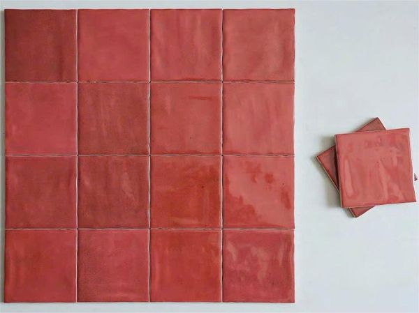 Gạch thẻ men bóng gợn 100x100mm màu đỏ