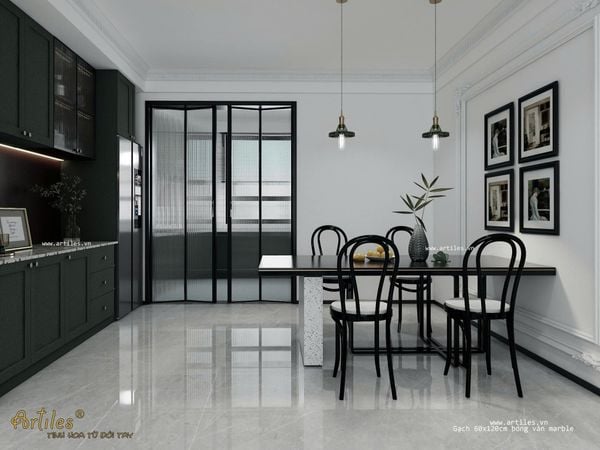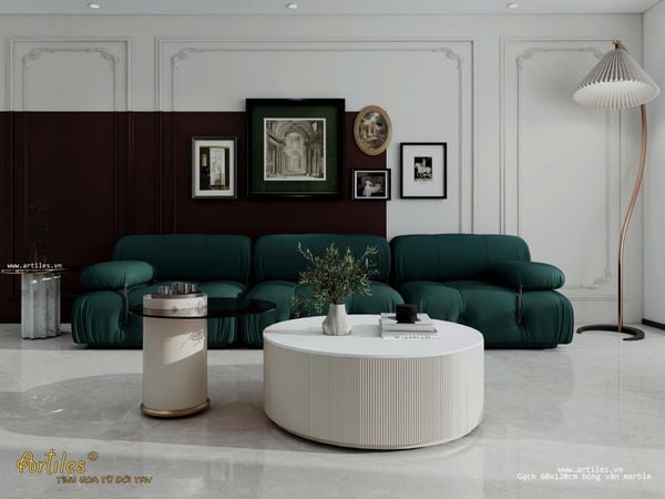 Bề mặt gạch SIÊU BÓNG ( hiệu ứng gương)– Như những tấm gương bóng bẩy phản chiếu từng bước chân, đồng thời tạo hiệu ứng khiến cho tổng thể không gian trở nên rộng rãi hơn gấp nhiều lần.