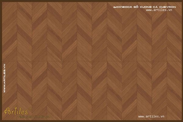 Kiểu lát xương cá rất thông dụng trong việc lát các loại sàn gỗ, với gạch giả gỗ dạng thanh thì thi công kiểu xương cá này cần nhiều công sức và sự tỉ mĩ hơn.